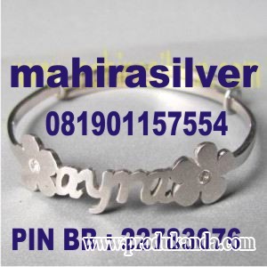 www.mahirasilver.com menyediakan berbagai perhiasan & aksesoris berbahan dasar perak berkualitas dengan kadar 925.Salah satu jenis perhiasan koleksinya adalah gelang anak nama perak lapis emas putih dengan model simpel dan elegan..