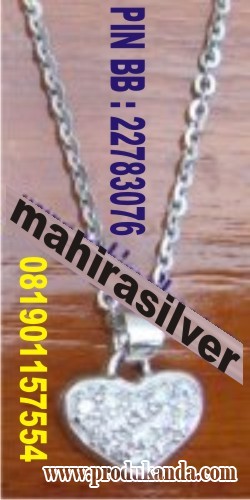 kalung perak cinta lapis emas putih dilengkapi diamond cantik, sangat romantis untuk kado pujaan hatimu,,